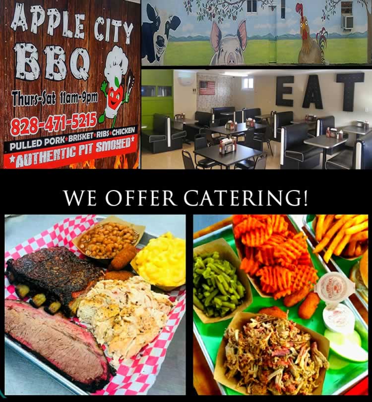 Apple City BBQ is family owned and operated! We are conveniently located on Hwy. 16 South, Taylorsville, NC. We invite you to dine-in or carry-out at our drive thru window. We also offer excellent catering service for all events.